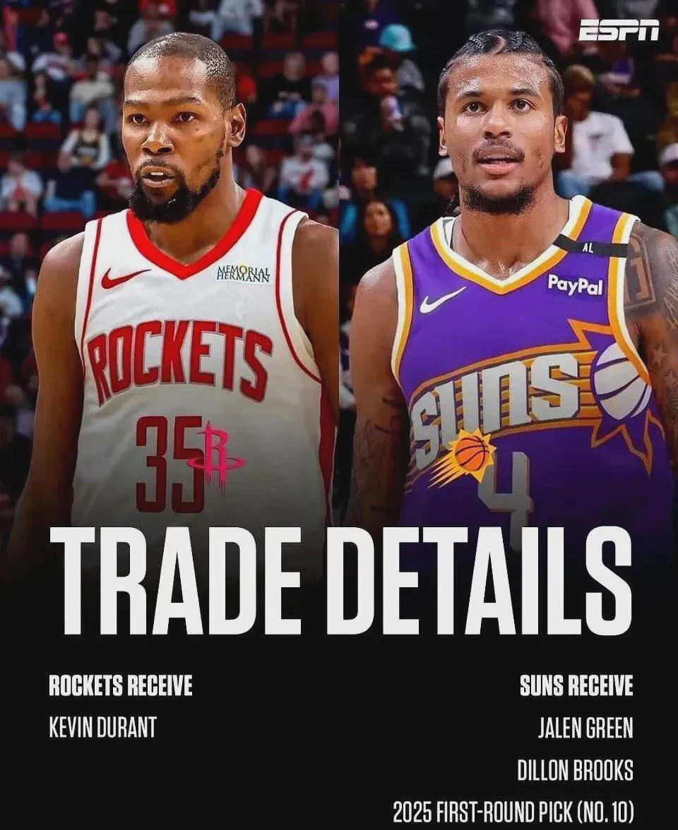 言归正传,失去杜兰特的太阳,如上所述竞争力不减反增,本赛季甚至有了直通季后赛的希望,而他们上赛季未能打进季后赛;当然,火箭更不会后悔拿杰伦格林等人交易来KD,拥有这位手握两座FMVP奖杯的老牌超巨之后,球队才真正具备了夺冠潜质。